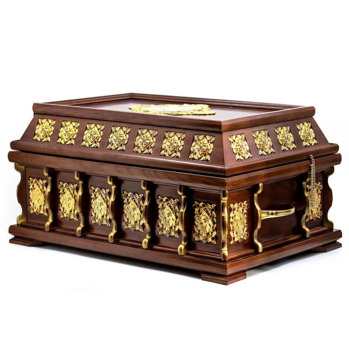 Ковчег церковний великий для храму з мощевиками з латуні в позолоті, прикрашений вставками фіанітів.