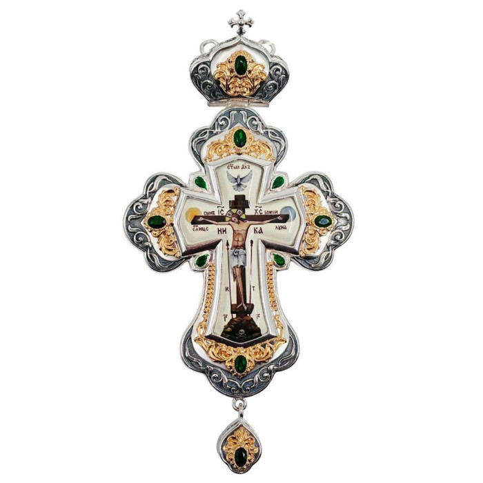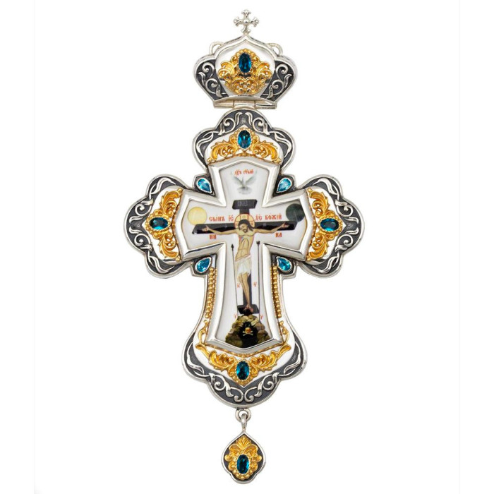 Хрест латунний з фрагментарною позолотою, з принтом і зі вставками