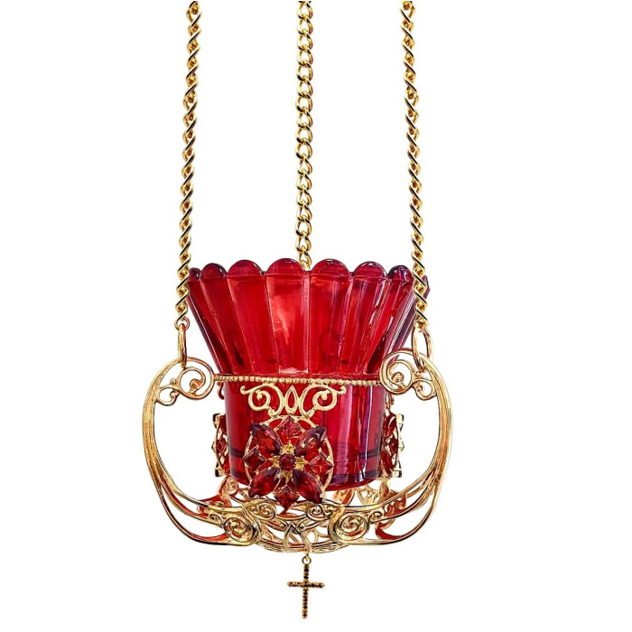 Лампада підвісна Ажурна з латуні в позолоті, з прикрасами з фіанітів.