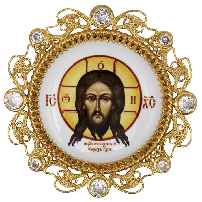 Накладка на митру латунна в позолоті, прикрашена фіанітами.