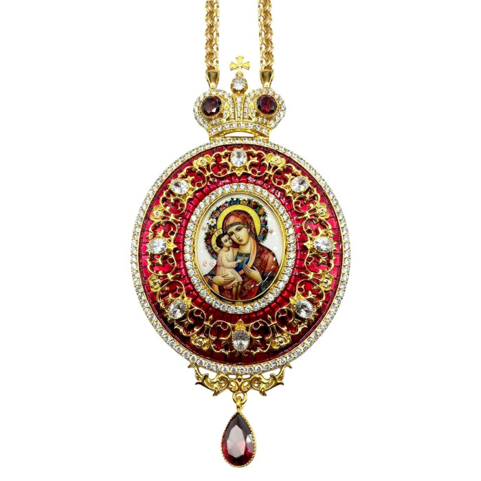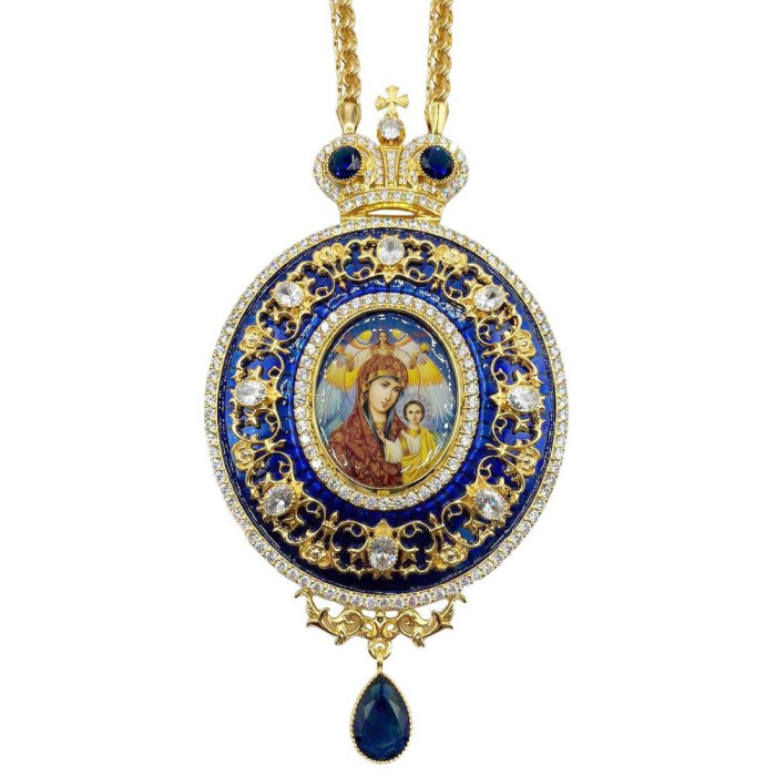 Панагія архієрейська з латуні в позолоті з емаллю і ланцюгом арт. BG0630LPE-2+1LP