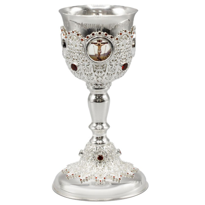 Потир комбінований 0,25 літра з латуні в срібленні зі срібною чашею, прикрашений вставками фіанітів.