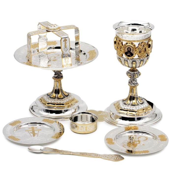 Євхаристійний набір комбінований в посрібленні з позолотою арт. BG0525KLFR-2-SET+7